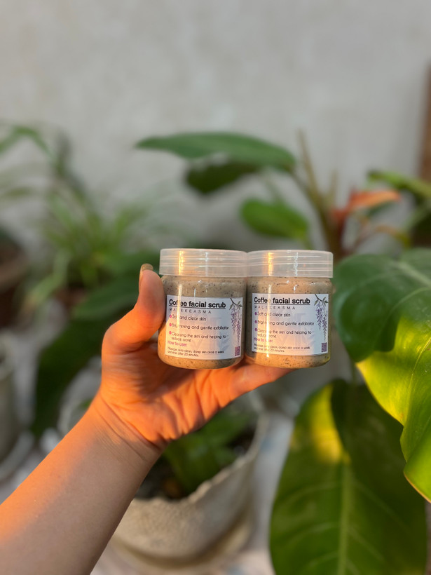 اسکراب طبیعی قهوه ملکهاسما با دانههای ریز قهوه و روغنهای گیاهی، مخصوص لایهبرداری ملایم و روشنکردن پوست طراحی شده.☕️🍩